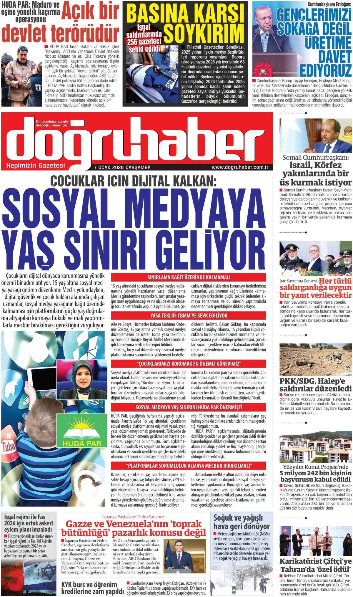Doğru Haber Gazetesi 7 Ocak 2026 Günü Manşeti