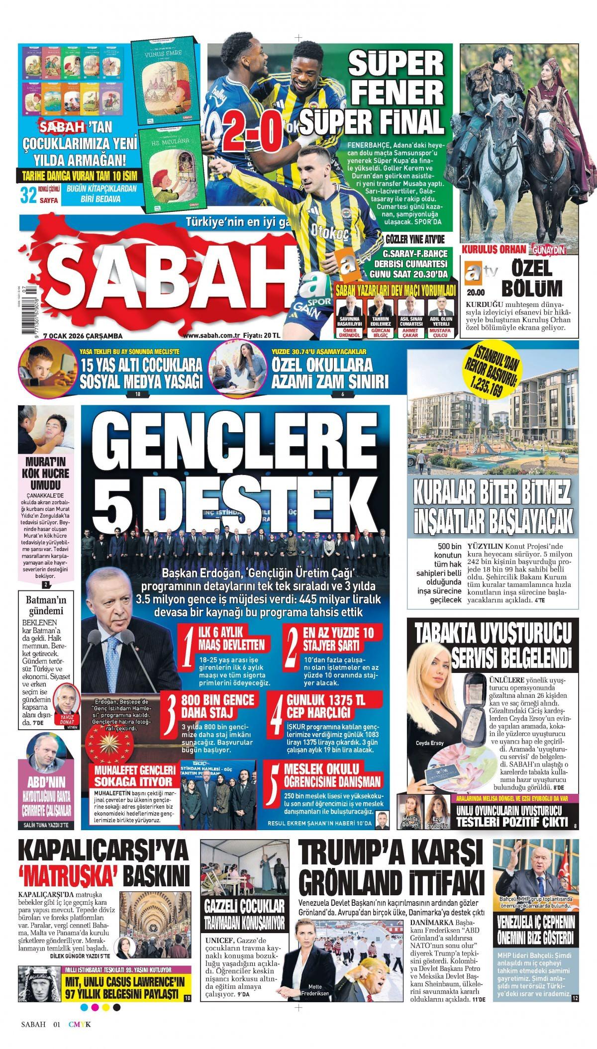 Sabah Gazetesi 7 Ocak 2026 Günü Manşeti