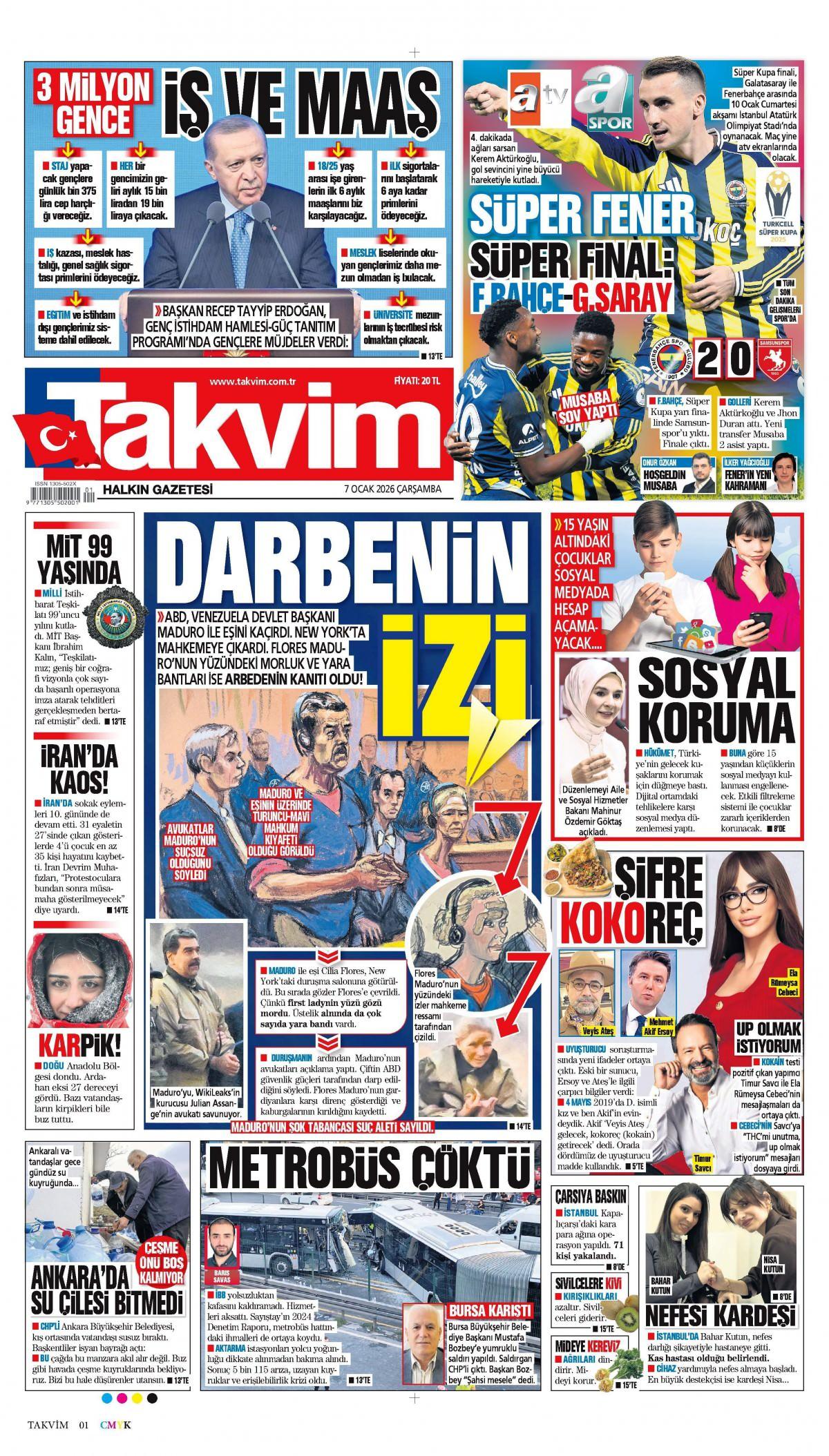 Takvim Gazetesi 7 Ocak 2026 Günü Manşeti