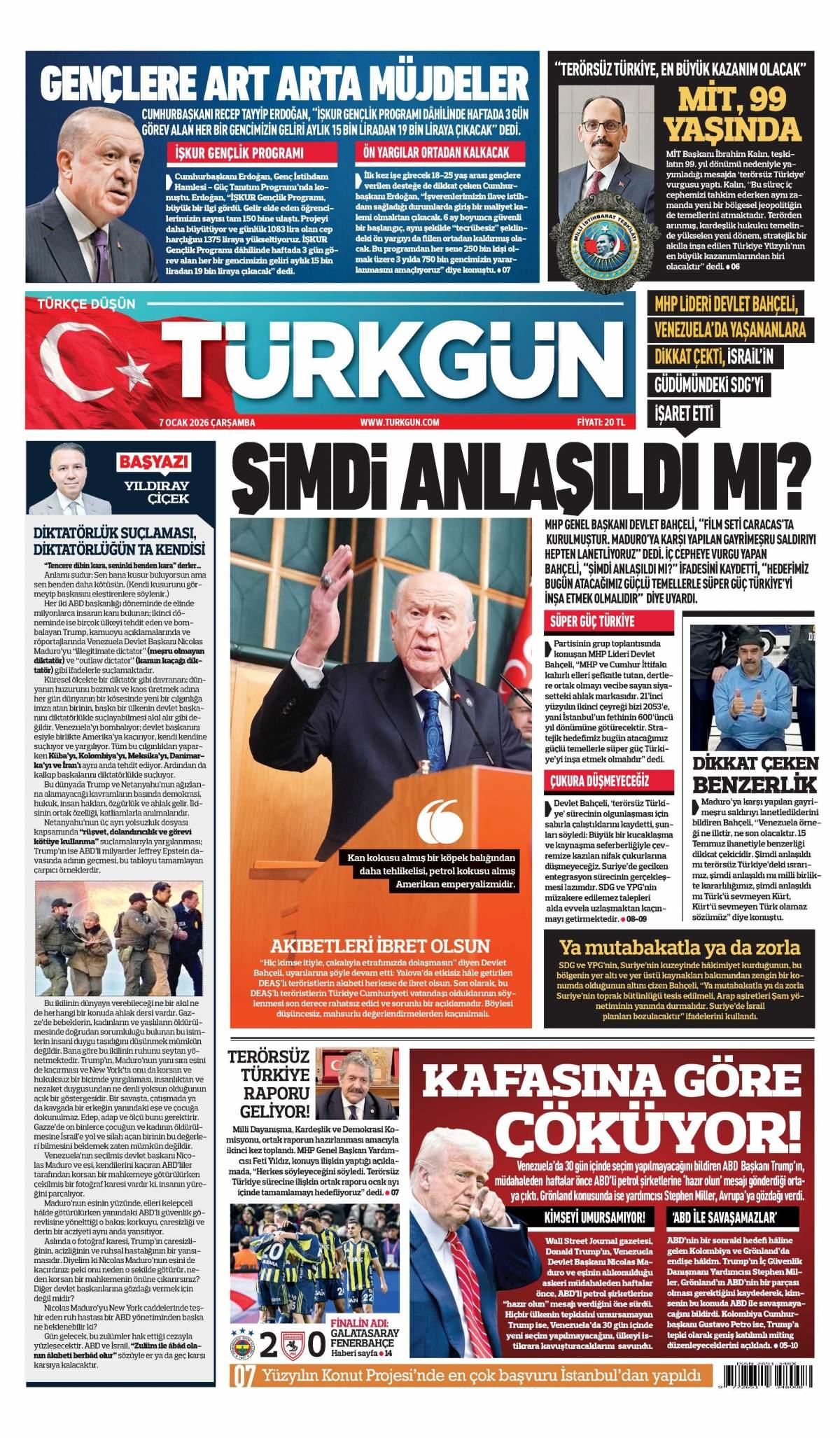 Türkgün Gazetesi 7 Ocak 2026 Günü Manşeti