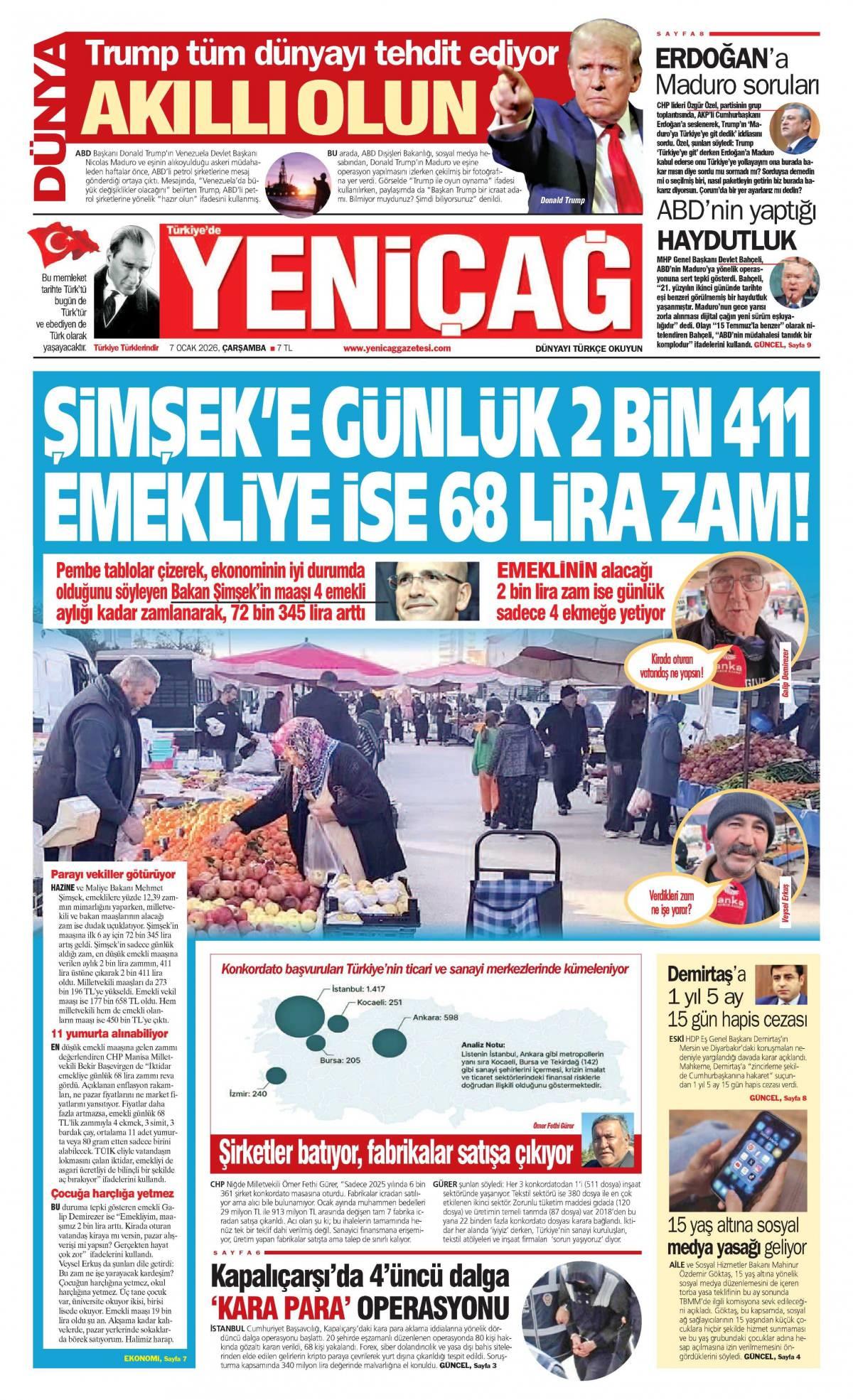 Yeni Çağ Gazetesi 7 Ocak 2026 Günü Manşeti